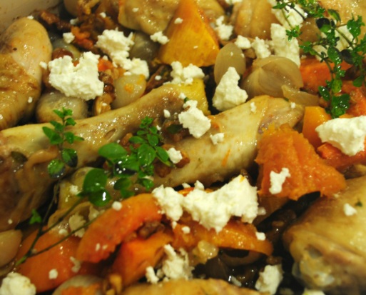 Cooking Instructions: caramelize the onions, add chicken pieces and delicata squash, sage, salt, and pepper. cook until well done. toast walnuts and crush them to make a crust and season to taste. Prepared in slow cooker, when done add goat cheese. Treats Eastern: strongly tonifies middle jiao, expels cold from lung and spleen, helps to resolve phlegm, mildly tonifies spleen blood, a good recipe to prepare for winter season as it regulates cold from organs that are essential for immunity such as spleen and lung. Treats Western: tonifies digestion |